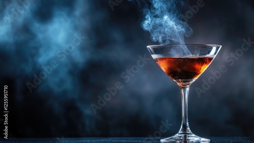 Smoking cocktail in glass on dark background