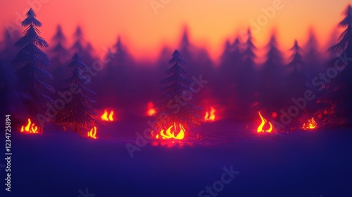 Smoky forest fire scene wilderness gigapixel illustration high fidelity atmospheric viewpoint