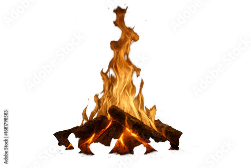Smoldering charred log glowing with fiery red cracks and subtle smoke trail, isolated ember heat element for rustic fire design and stock backgrounds