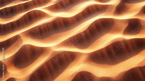 Smooth and Elegant Sand Patterns in Gentle Dunes Reflecting Warm Light, Creating a Serene and Tranquil Natural Landscape of Desert Terrain