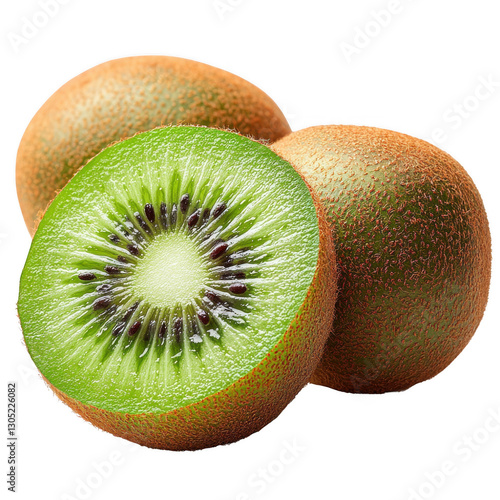 Smooth and Ripe Kiwi Fruit with Fuzzy Brown Skin on Transparent Background