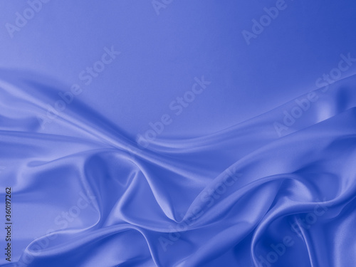 Smooth elegant wavy blue satin silk luxury cloth fabric texture, abstract background design.