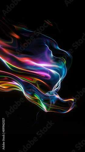 Smooth flowing dark liquid in iridescent dark blue and purple hues against a black background, creating a beautiful wallpaper style.