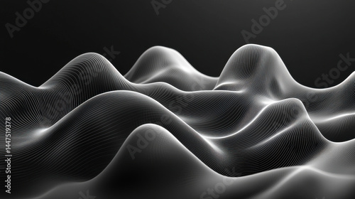 Smooth, flowing waves in monochrome gradient create dynamic visual effect