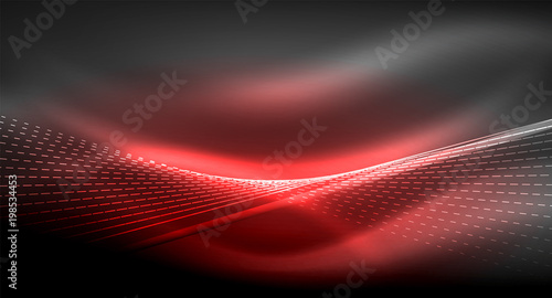 Smooth light effect, straight lines on glowing shiny neon dark background. Energy technology idea