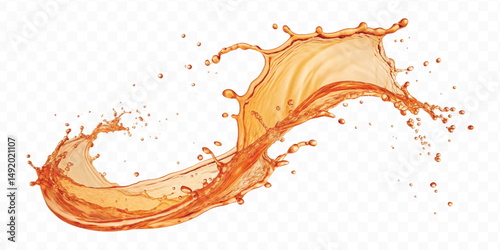 smooth liquid orange Juice water splash in curve style isolated on transparent background