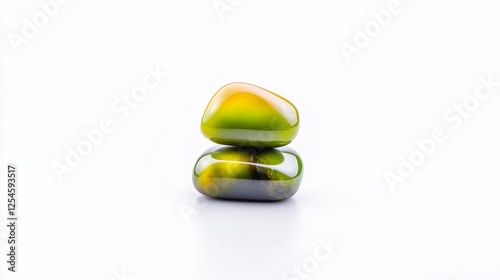Smooth Polished Green Stones Stacked on a White Background. Generative AI