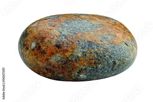 Smooth river stone with natural patterns and earthy colors, isolated on a white background.