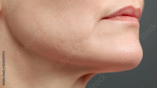 Smooth skin texture on woman jawline, showcasing natural beauty and health. close up highlights skin details and subtle features, emphasizing fresh appearance