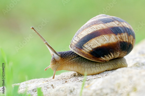 Snail crawling on the stone. Tarhankut. Crimea ,Russia. lat. Eobania vermiculata