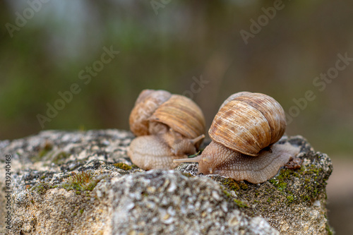 snail crawls on the stone