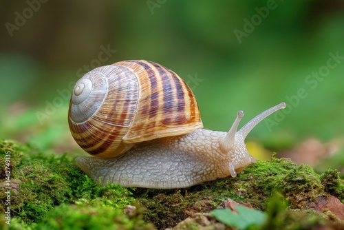 Snail on Moss: A Serene Nature Close-up