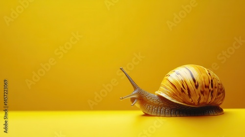 Snail on vibrant yellow background: nature's subtle elegance in motion