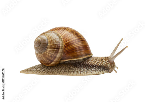 Snail with a detailed shell and extended tentacles, isolated on white background