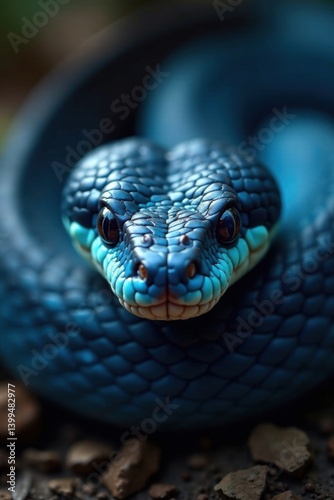 Snake closeup face of blue viper snake in natural habitat, nature, wildlife photography, venomous