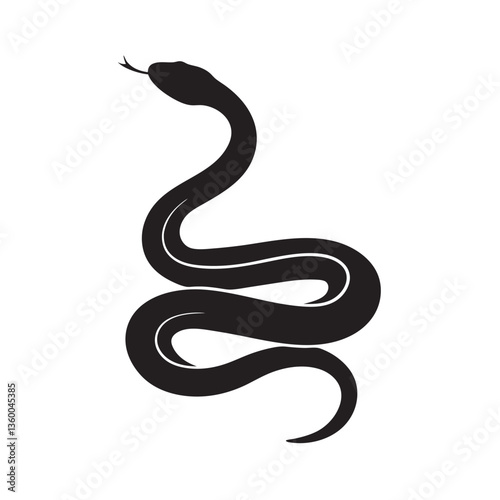 Snake icon, snake black vector silhouette, Curved snake animal design illustration on white background