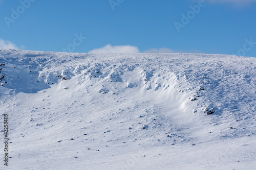 Snow covered mountain with sunlight and shadows.Shot in Sweden, Scandinavia