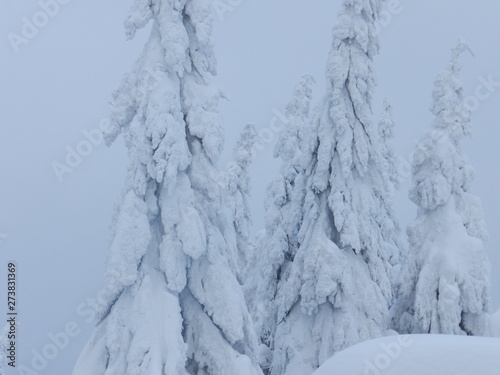 snow covered pine trees