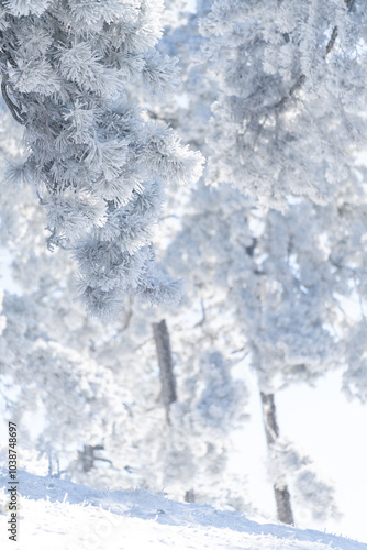 Snow covered trees. Winter forest