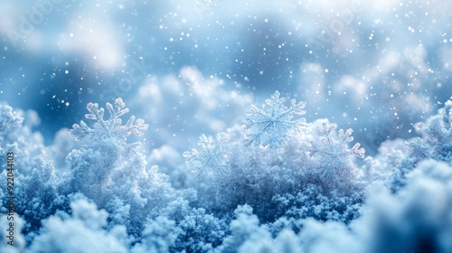 Snow is falling on a snowdrift with beautiful snowflakes