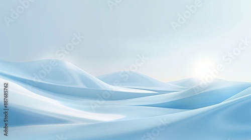 Snow mountains on a light blue background with curved lines depicting light reflection.