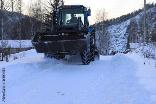 snow removal by a tractor after a snowfall
