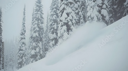 Snow-Clad Sentinels: Towering pine trees stand adorned in white, their needles dusted with fresh snow. Copy space beneath their majestic forms.