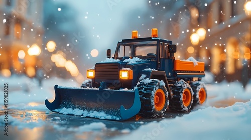 Snow-clearing vehicle pushing snow off the streets, ensuring clear routes for drivers, depicted in a clean and minimal illustration style