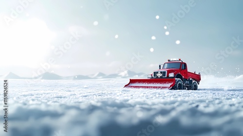 Snow-clearing vehicle pushing snow off the streets, ensuring clear routes for drivers, depicted in a clean and minimal illustration style