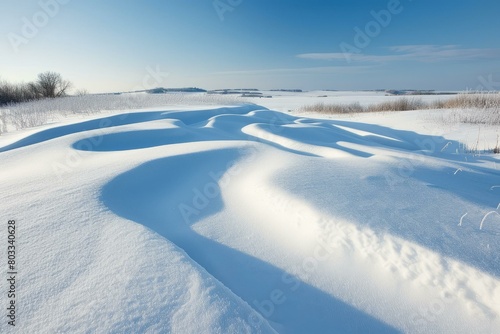 Snow-covered field with snowdrifts