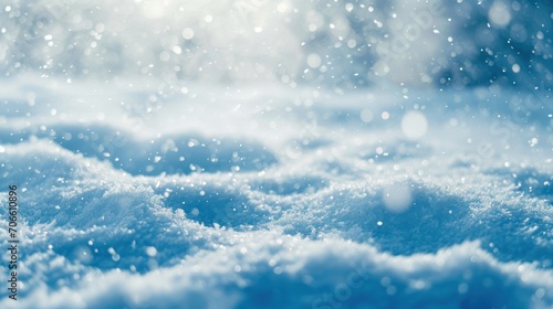 Snow-Covered Ground With Falling Snow Flakes in a Wintry Landscape