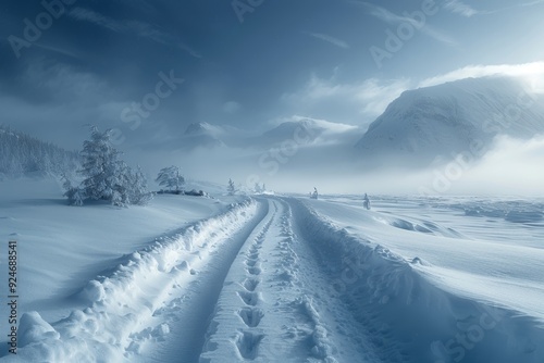 Snow-Covered Landscape Capturing the Beauty of a Harsh Blizzard.
