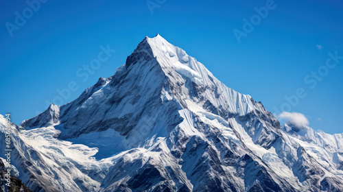 Snow-covered mountain against a blue sky. Generative Ai