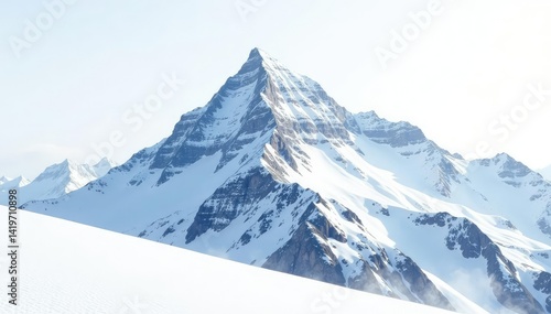 Snow-covered mountain peak, pristine white background, landscape, background