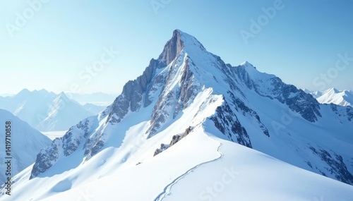 Snow-covered mountain peak, pristine white landscape, nature background, glacial, landscape