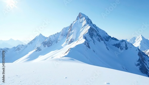 Snow-covered mountain peak, pristine white landscape, scenic, landscape, alpine