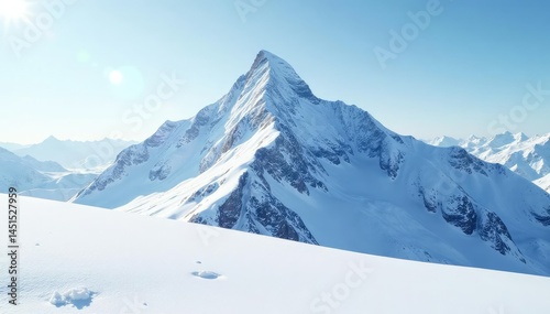 Snow-covered mountain peak, pristine white landscape, stock, landscape