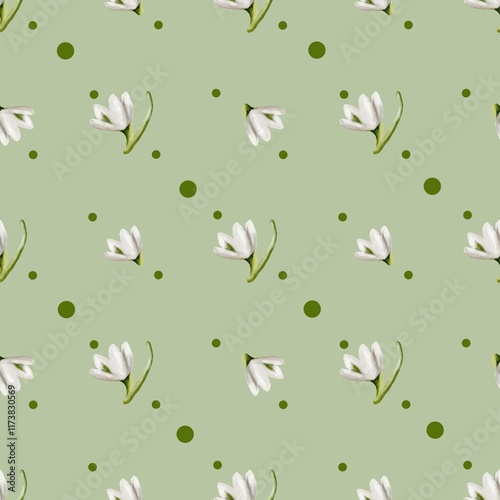 Snowdrop watercolor pattern design for seamless fabric and wrapping paper