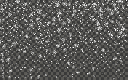 Snowfall and falling snowflakes