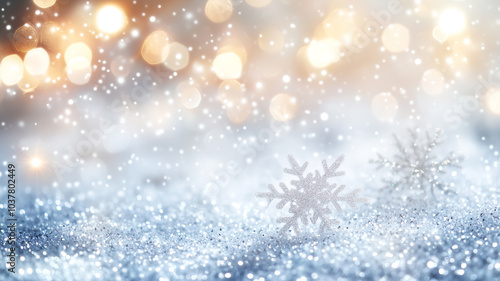 Snowfall and glitter stars background.
