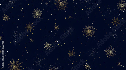 Snowflake and Starry Pattern in Gold on Dark Blue Backdrop