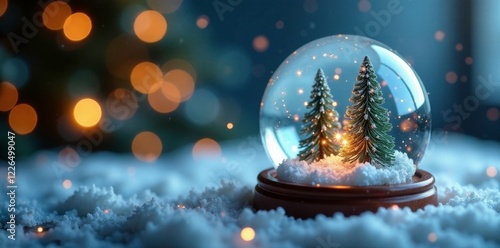 Snowflake decorations inside magical winter snow globe, small, decorative