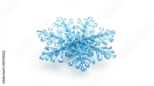 snowflake icon for winter season, detailed icy blue, isolated on white