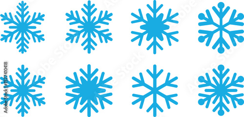 Snowflake Icons Set, Winter Blue Snow Crystal Vector Collection