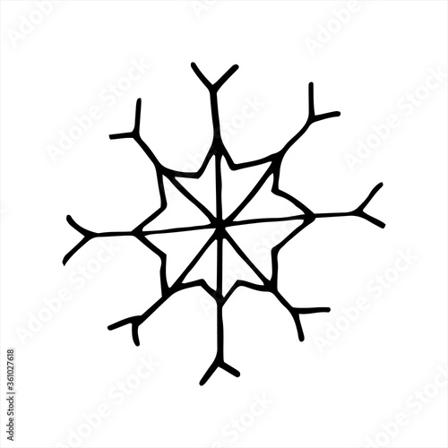 Snowflake in black and white, isolated simple hand drawn vector illustration in doodle style