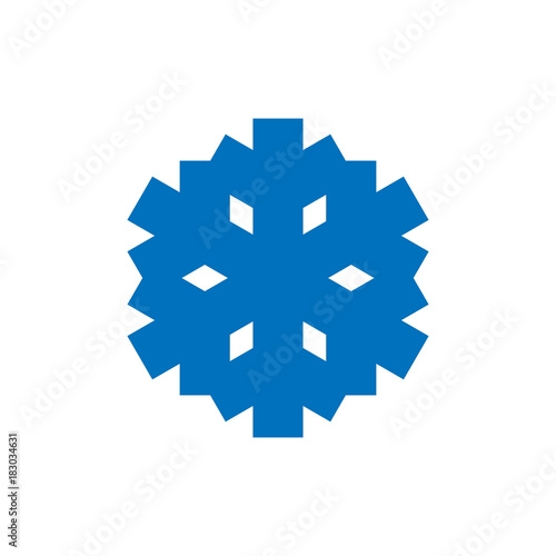 Snowflake sign. Blue Snowflake icon isolated on white background. Snow flake silhouette. Symbol of snow, holiday, cold weather, frost. Winter design element Vector illustration