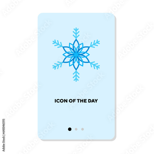 Snowflake with beautiful pattern on blue background flat icon. Vertical sign or vector illustration of symbol of winter season or holidays element. Winter, decoration, magic for web design and apps