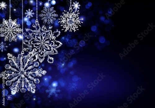 Snowflakes and snow are set against a blue Christmas background for the holiday season