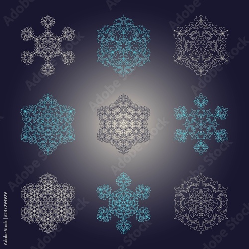 Snowflakes background. Snowflakes pattern. Snowflake ornamental pattern. Vector illustration