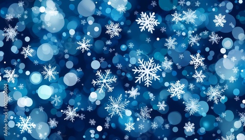 Snowflakes Background. Winter Pattern. Blue Winter Background. Falling Snow.